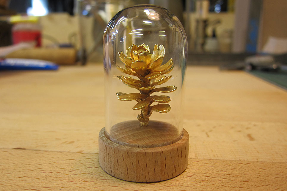 Aeonium auf Ast, Silber vergoldet